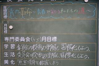 今日も朝からよく晴れていました。登校してくる生徒のあいさつの声が前の学年の時よりも大きくなっているように思えます。
