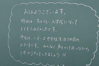 昨日の入学式を終えた1年生は今日から学級や全校でのオリエンテーションを受け、中学校生活が始まります。