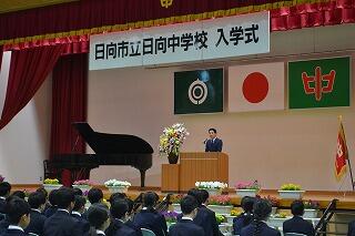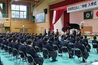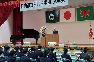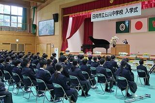 4月11日(木)、「日向市立日向中学校第64回入学式」を挙行し、99名の新入生が入学しました。