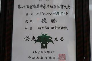 日向中からは、バスケットボール、卓球、バドミントン、陸上に出場しました。入賞した団体種目と個人種目を紹介します。
