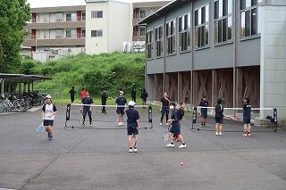 雨天のため延期になった屋外種目が本日開催され、日向中からはソフトテニス競技女子個人戦に5ペア出場しました。