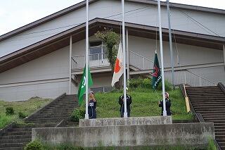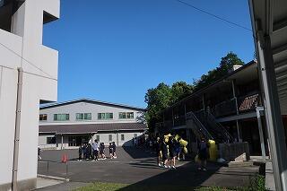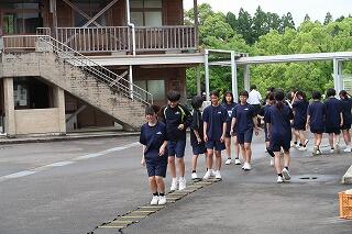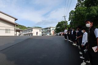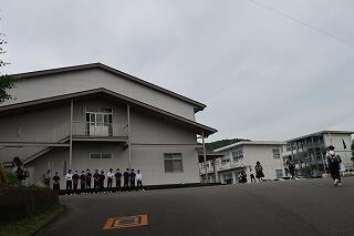 今朝は雨は降っていないもの雲が広がり、梅雨らしい空模様でした。土曜日から日曜日にかけて日向地区の中総体が開催されました。まだ疲れが残っている生徒がいるようにも見えました。