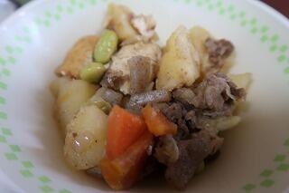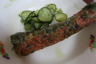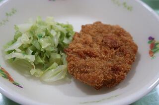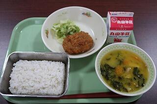 【6月14日(金)】麦ご飯、コロッケ、シソの実和え、カボチャの味噌汁