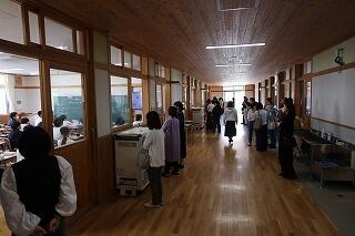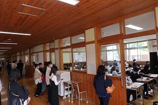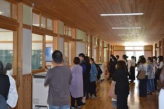 離任式の終わった後の廊下や体育館の周りでは、先生たちの別れを惜しむ多くの姿がありました。