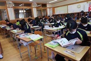 3年生の卒業にあたり、卒業記念品を今年度も寄贈していただきました。記念品はカーテンです。このカーテンは昨年の生徒総会で生徒から「教室の廊下側のカーテン設置」の要望があったもので、先週から3年生の教室に取り付けてあります。校歌の歌詞「緑の風」を意識した色です。3年生(卒業生)及び保護者の皆様、ありがとうございました。