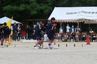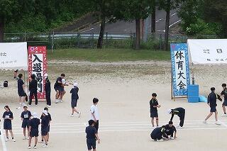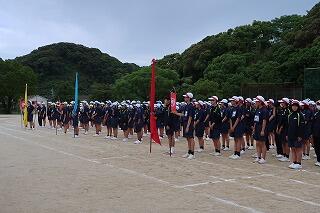 日向地区中学校総合体育大会2日目(6月9日(日))は、雨天のため陸上競技を除いて屋外競技は明日に順延になりました。