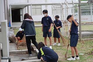 1年生は来賓控室や廊下、トイレ、屋外の清掃を行いました。