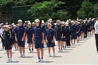 清掃を終えた後、体育館で新任式や始業式を行いました。令和6年度もよろしくお願いします。