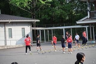今日は曇り空で、午前中は時々雨も降っていました。始業式は来週の月曜日(4月8日)なので、春休みは今日を含めて残り3日です。体育館や渡り廊下を使って今日も部活動の練習を頑張っていました。