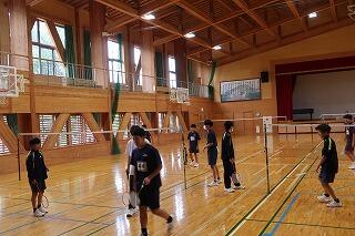 週末に日向地区中学校総合体育大会が開催されました。日曜日に雨が降り、開催できなかった屋内競技は、今日に順延でした。日向中はソフトテニス競技女子個人戦に出場しました。