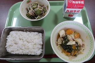 【6月12日(水)】麦ご飯、豆腐の中華煮、キクラゲの和え物