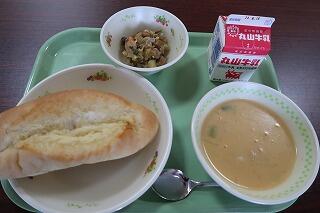 【6月11日(火)】チーズパン、ウインナーのソテー、キャロットポタージュ