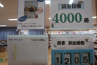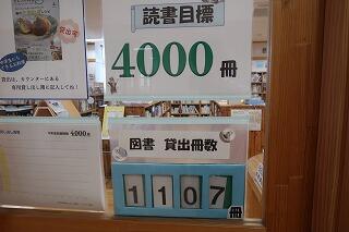 今年度の年間図書貸出目標は4000冊です。すでに1107冊の貸出となっています。