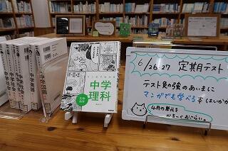 今日の日向中図書館のようです。新刊本の紹介や「読書感想文コンクール」関連の本や勉強に関する本やポップが生徒の目につきやすいように工夫してあります。