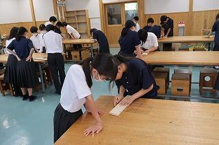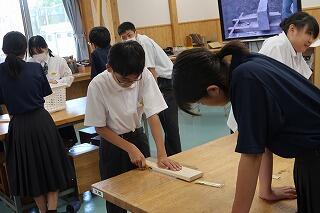 昨日(6月18日(火))は、日向中で技術・家庭科(技術分野)の研究授業があり、日向市内の小学校の家庭科主任や中学校の技術・家庭科主任の先生が来校されました。授業は「材料による加工方法の違いを考える」もので、実際にプラスチックの板を専用のカッターを使って自分たちで切断する場面もありました。授業後は、参観された先生方で授業の進め方や生徒の動きについて協議がなされました。