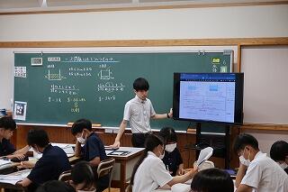 【数学】一次関数の勉強をしています。説明を聞いた後、各自で問題を解いたり、学び合ったりしていました。