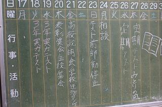 3年生の教室の近くには高校のポスターが掲示してあり、パンフレットも手に取りやすいところに置いてあります。今週の金曜日の「高校説明会」では、高校の先生方から直接半紙を聴くこともできます。来年の4月、自分がどこで学びたいか、まずは目標を決めることが大切です。