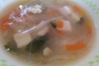 【今日(12月23日(月))の献立】麦ご飯、チャプチェ、白菜のとろみスープ