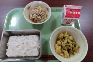 【12月9日(月)】麦ご飯、高野豆腐と野菜の卵とじ、ごぼうサラダ