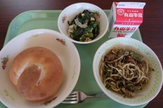 【12月12日(木)】減量米粉パン、たらこスパゲティ、わかめサラダ