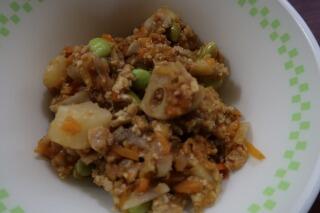 【12月13日(金)】麦ご飯、メンマのカレーきんぴら、ごま豆乳汁