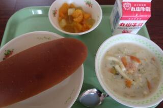 【12月5日(木)】黒糖パン、カブと白菜のクリーム煮、フルーツポンチ