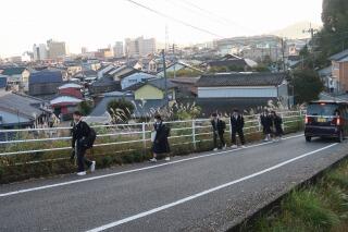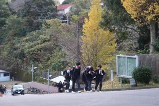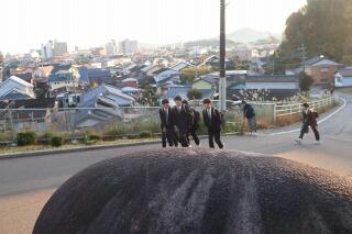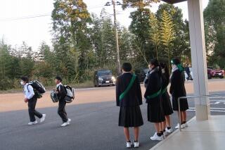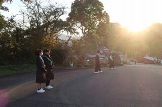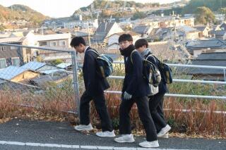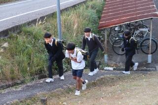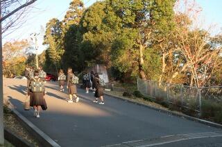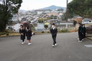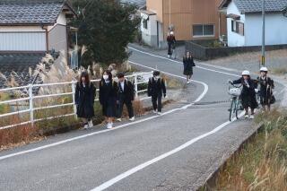 明日が「2学期終業の日」です。今朝も寒い朝を迎え、通勤途中の車外の気温は氷点下1℃でした。マフラーやネックウォーマーをつけて「希望の坂道」を登校していました。