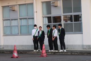 今朝の気温は4℃程度。風が冷たく、とても寒い中での登校でしたが、中には半袖の生徒や上着(ジャケット)を着ずに登校している生徒もいました。