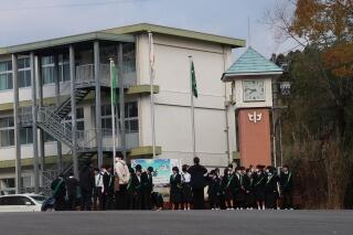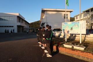 今朝も寒い中での登校でした。今日も生徒会の「あいさつ運動」は行い、今朝の担当は2年生の学級でした。生徒会執行部生徒は毎朝活動に参加しています。