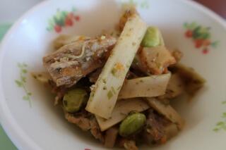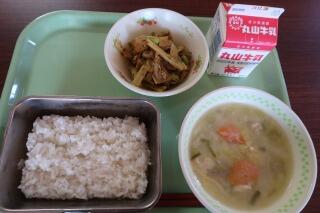 【12月13日(金)】麦ご飯、メンマのカレーきんぴら、ごま豆乳汁