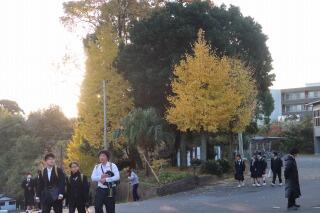 今朝も真冬の寒さでした。2年生が修学旅行に行っていた3週間前とは気温がずいぶん違います。昨日の強い風で、色づいていた銀杏の葉もほとんどがなくなりました。