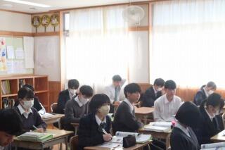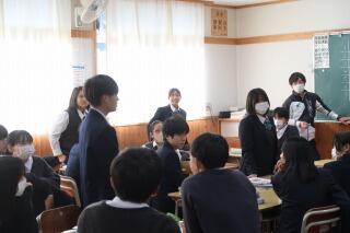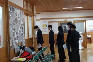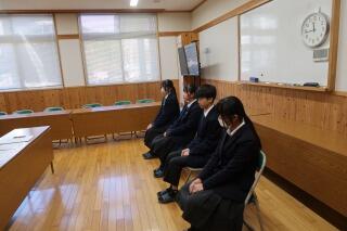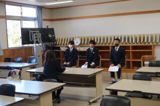 12月19日(木)、23日(金)の2日間にわたり、3年生の高校入試に向けた「面接」の練習「よのなか先生」にお越しいただいて行いました。これまで3年担当の先生や校長、教頭、教務主任などを面接官とした練習を行ってきましたが、普段会うことや話したことのない方からの面接にとても緊張していました。