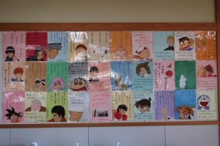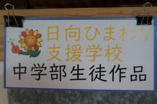 日向中学校では 日向ひまわり支援学校 との交流活動を定期的に行っています。現在、日向中職員室前の廊下には日向ひまわり支援学校中学部の生徒作品展示してあります。来校された際にはご覧ください。