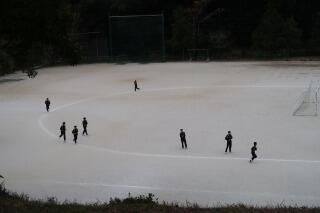 体育の授業は11月末から持久走を行っています。今日は曇り空の下、目標タイムのクリアを目指して運動場の200mトラックを走っていました。写真を撮るために10分ほど外にいましたが、今日は日差しがなく、特に寒く感じました。