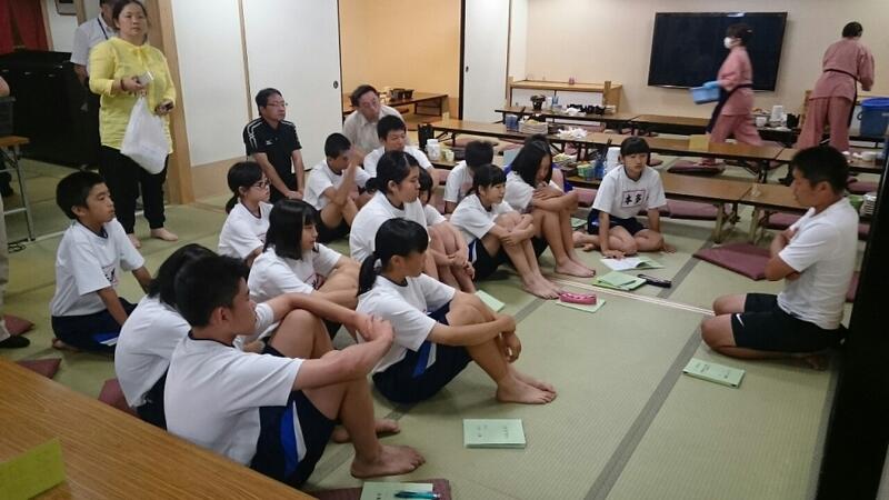 体育館建設中なので玄関前に集合しました。県大会にはサッカー部、陸上競技部、卓球部、男子バスケットボール部、男子バドミントン部、女子バドミントン部、柔道、テニス、駅伝が参加します。