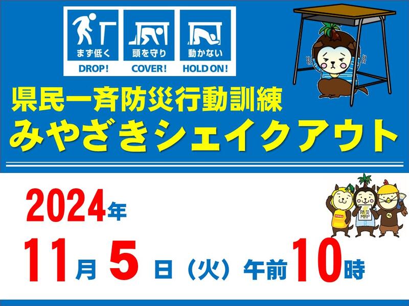 今日は県民一斉防災行動訓練「みやざきシェイクアウト」の実施日です。日向中では2時間目の授業中に訓練を行いました。また今日(11月5日)は「津波防災の日」でもありました。日頃からの訓練や備えが大切ですね。