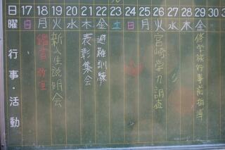 校門そばには掲示板があり、生徒会役員が書き換えています。11月の行事予定は、新役員が初めての活動として書いてくれたようです。