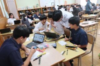 その間、6年生は生徒会役員の案内で、校内の授業を見て回りました。