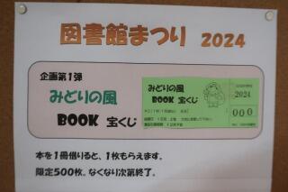日向中図書館は現在「図書館祭り」を開催しています。今週は「みどりの風BOOK宝くじ」です。
