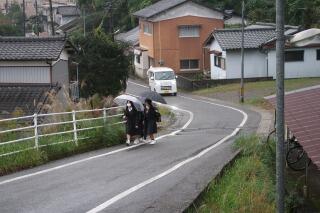 今日は朝から小雨混じりの天気でした。傘を差したりカッパを着たりしての登校でした。