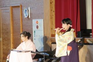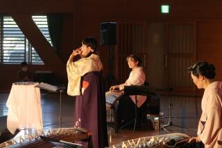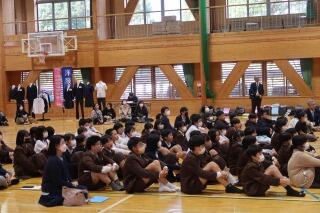 昨日(11月18日(月))、体育館で鑑賞教室を行いました。今年は和楽器による音楽を鑑賞し、「笛と箏ユニット SKY」の皆様にお越しいただきました。曲目はお正月に耳にする「春の海」や「越天楽」から「もののけ姫」や「春よこい」、「千本桜」、そしてアンコールでは「ルパン三世のテーマソング」も聞かせていただきました。
