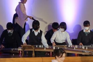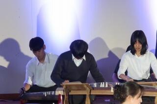 途中には楽器の紹介や代表生徒による箏の演奏体験などもありました。
