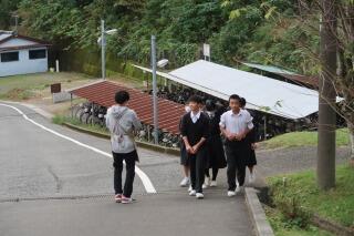 学校に戻ってきました。今朝は富高小学校の近くに行った生徒会担当の先生も生徒の帰りを待っていました。役員の皆さん、お疲れ様でした。