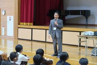 11月19日(火)、来年4月に入学する小学6年生および保護者を対象とした「新入生説明会」を行いました。はじめに保護者を対象に学校行事や校時程、生活のきまりなどを保護者に説明しました。