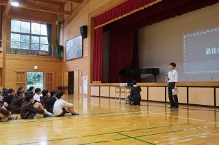 休憩後、後半は生徒会役員による一日の流れや生徒会活動、部活動の紹介です。校長の話に続き、クイズ形式や各部活動のビデオなどで工夫を凝らした説明を行っていました。