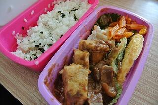10月18日(土)緑風祭の日はお弁当の日でもありました。買い物から全部自分でがんばったお弁当から、家の人に手伝ってもらったお弁当までいろいろなものがありましたが、皆おいしそうに食べていました。