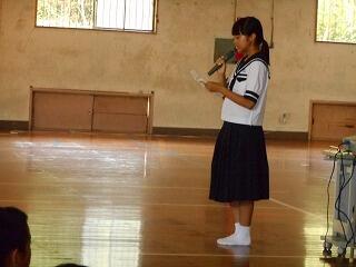 終業式が行われました。1,2、3学年の代表者がこの一学期を振り返り、意見を発表しました。