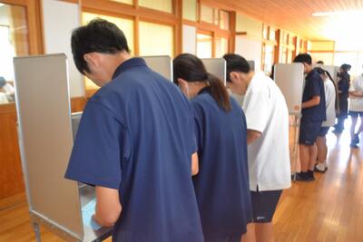 投票用紙をもらうと、改めて悩む生徒もいましたし、自分が託したい候補者にサッと〇をつける生徒もいました。