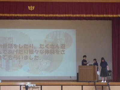 2年生発表は、「14歳のよのなか挑戦(職場体験学習)」の発表です。