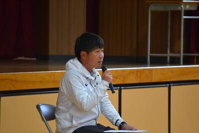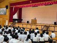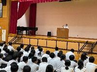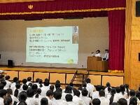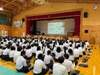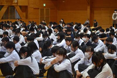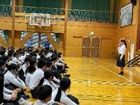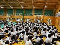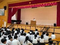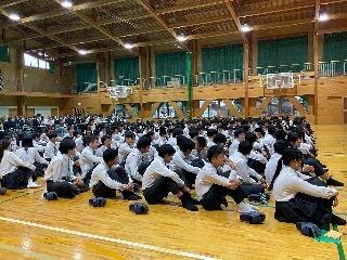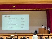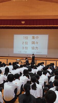 本日、6時間目に宮野先生から、「言葉」についてのお話がありました。 目を閉じて、自分自身のことを振り返りながら、心で「きく」集会でした。